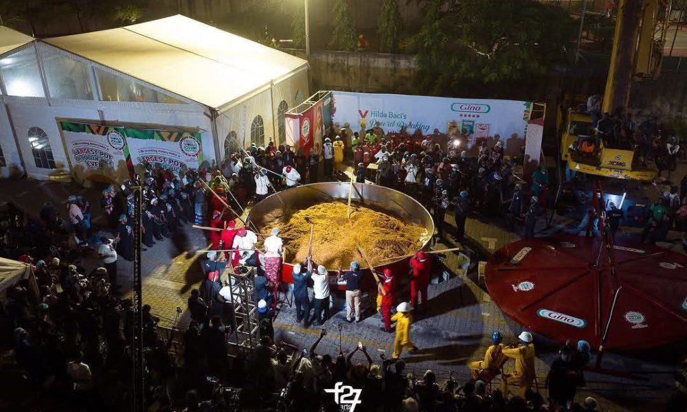 La célèbre chef de cuisine nigériane a cuisiné la plus grande marmite de jollof rice jamais faite, 8.780 kgs, réalisée par la Chef naija avec la...